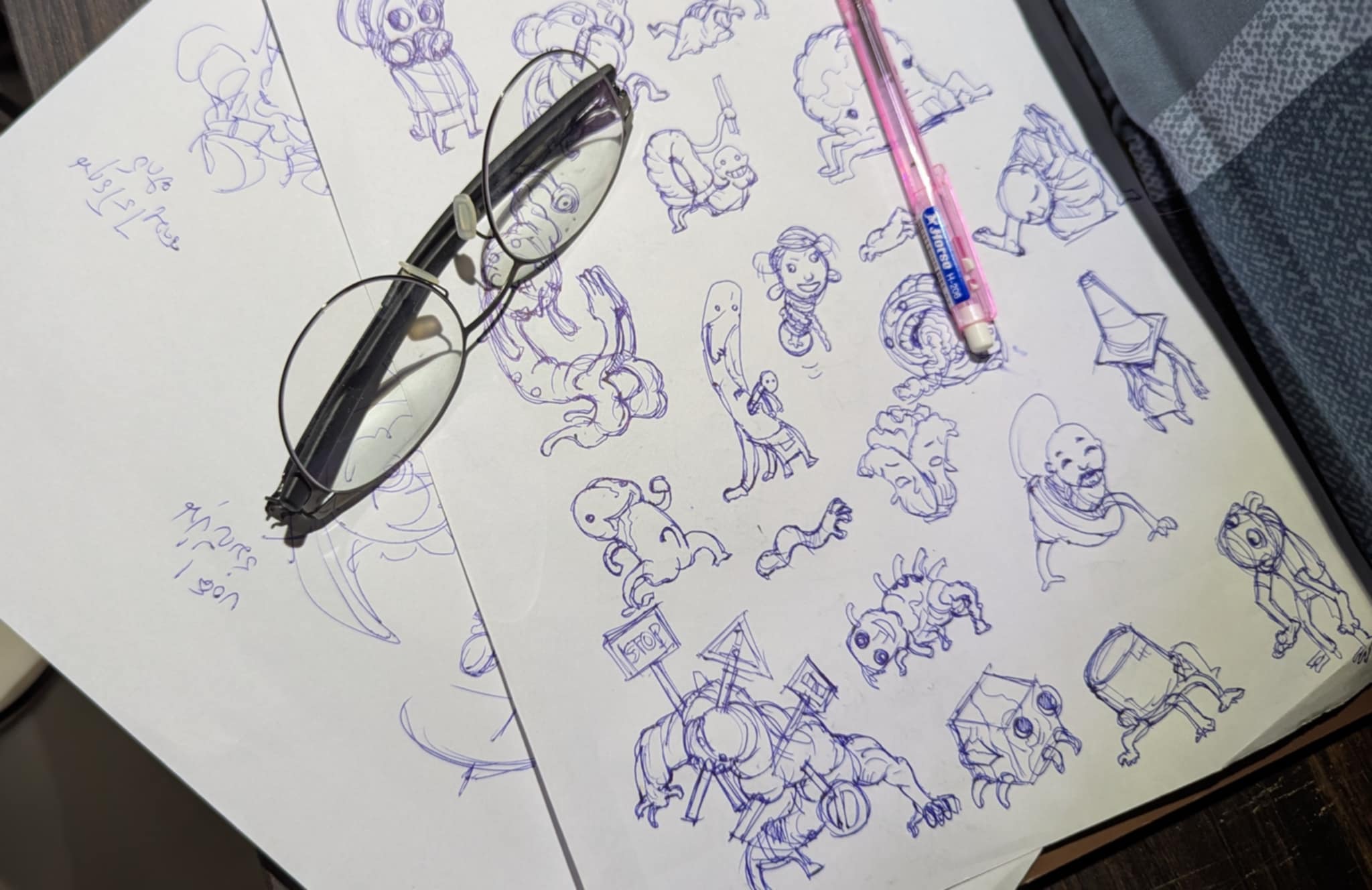 I proceeded solo. No approvals, no meetings. I grabbed a pen and paper, sketched hundreds of monsters, and developed a philosophical plot for Billy. My core design principle was: "This is the game I want to play, a genre I can't find anywhere else." Everything had to be WEIRD!